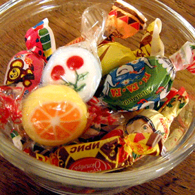 先日買い付けでロシアに行って来たので、ささやかなおみやげを買ってきました。かわいいパッケージのお菓子です。(味は未確認です。)