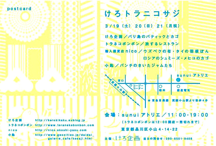 けろ企画 / トラネコボンボン / nico / 小匙3月19日(土)・20日(日)・21日(月祝)